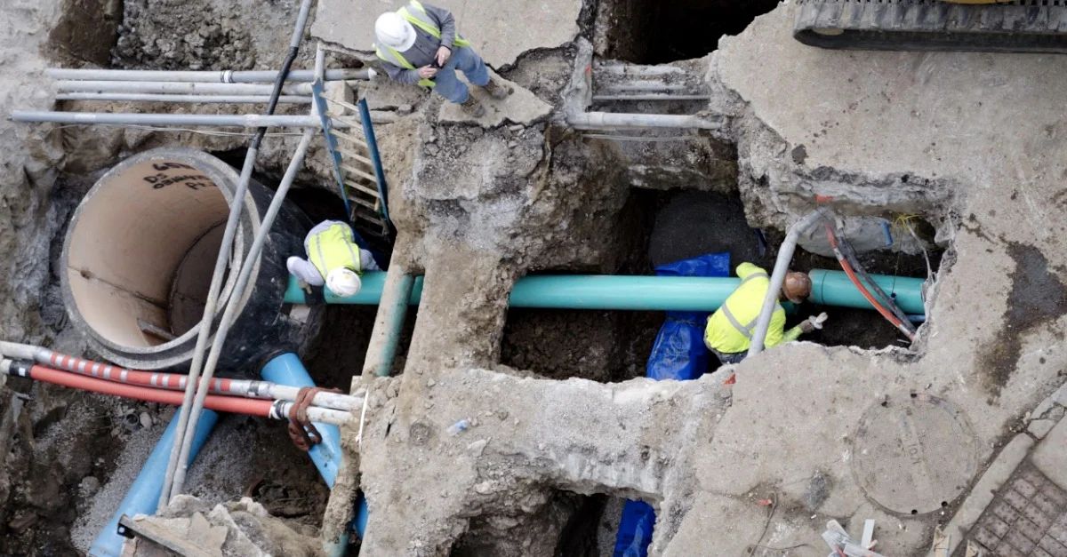 Dig into the subgrade and you’ll find infrastructure snaking in every direction, connected, overlapped, and twisted all around. The entire configuration is extremely fragile and sudden breaks routinely occur. Workers digging around it must be extremely careful to avoid triggering problems. It’s not uncommon for crews to deal with patching and repairing pipes as they move through the ground focused on other goals.